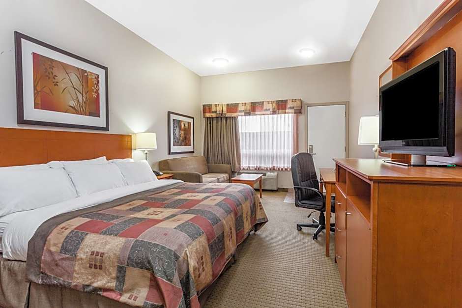 This family room features air conditioning, a microwave, fridge, flat-screen TV and pay-per-view movies.